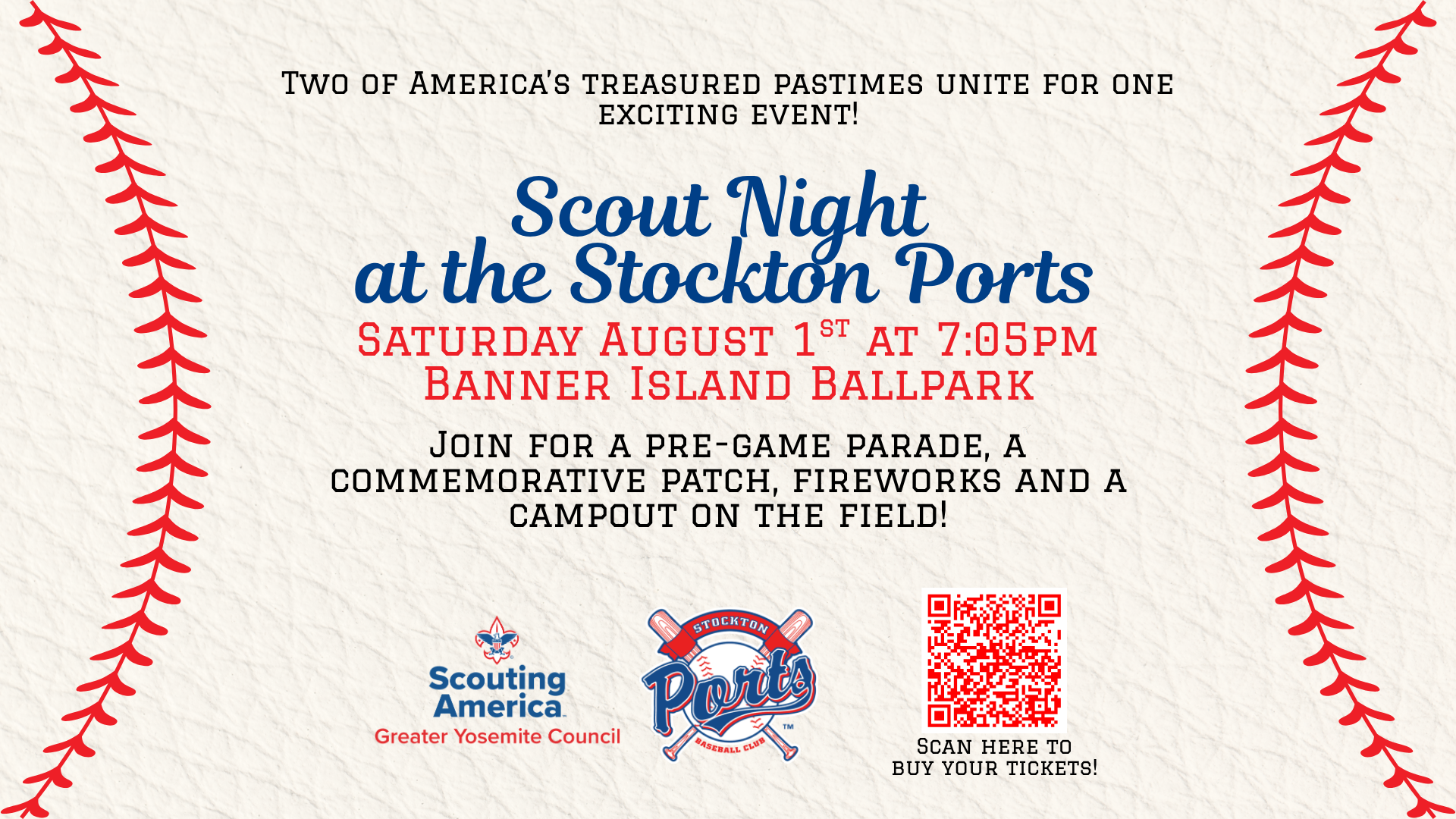 Join us for Scout Night at the Stockton Ports against the Lake Elsinore Storm on Saturday, August 1st!